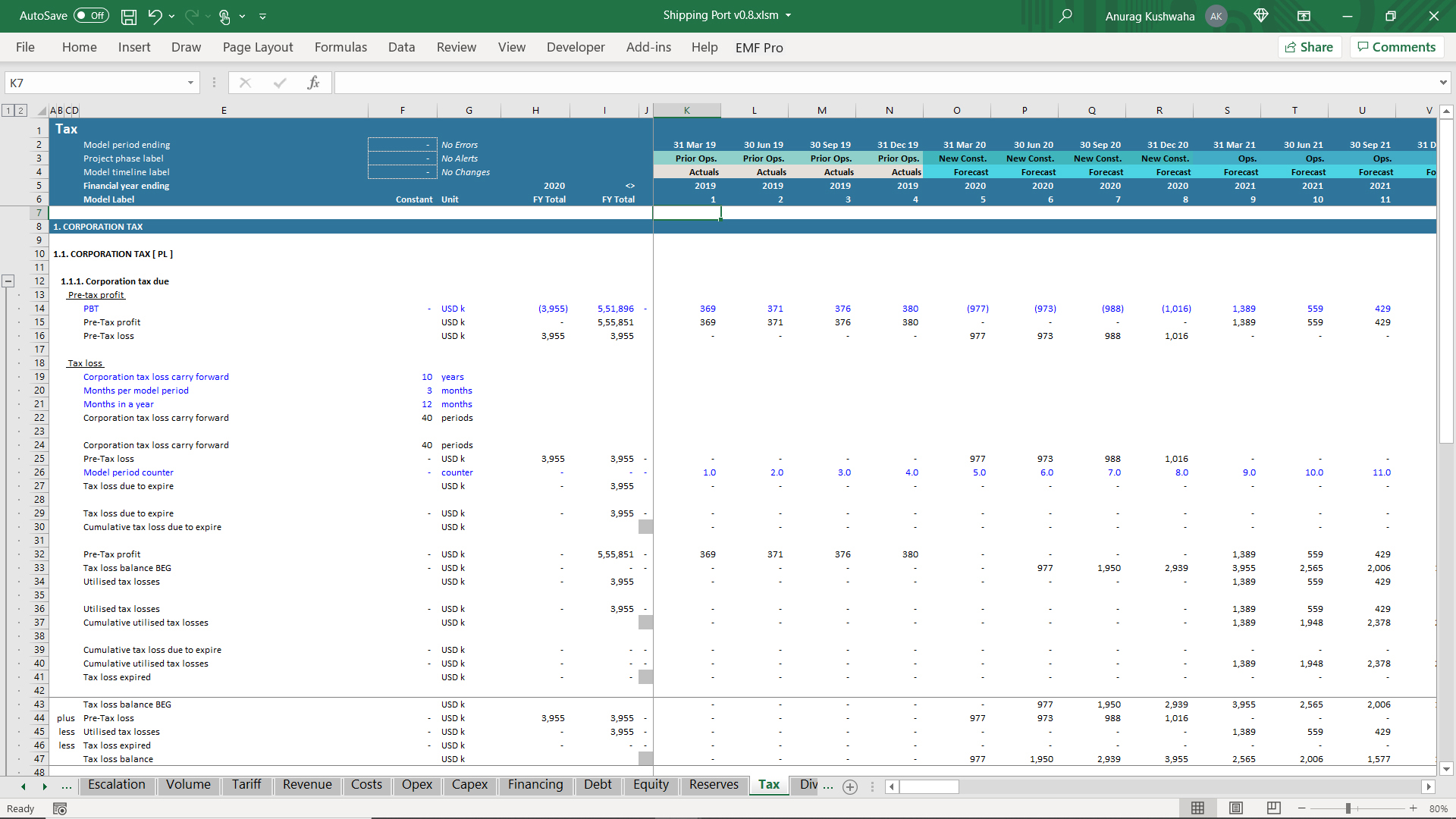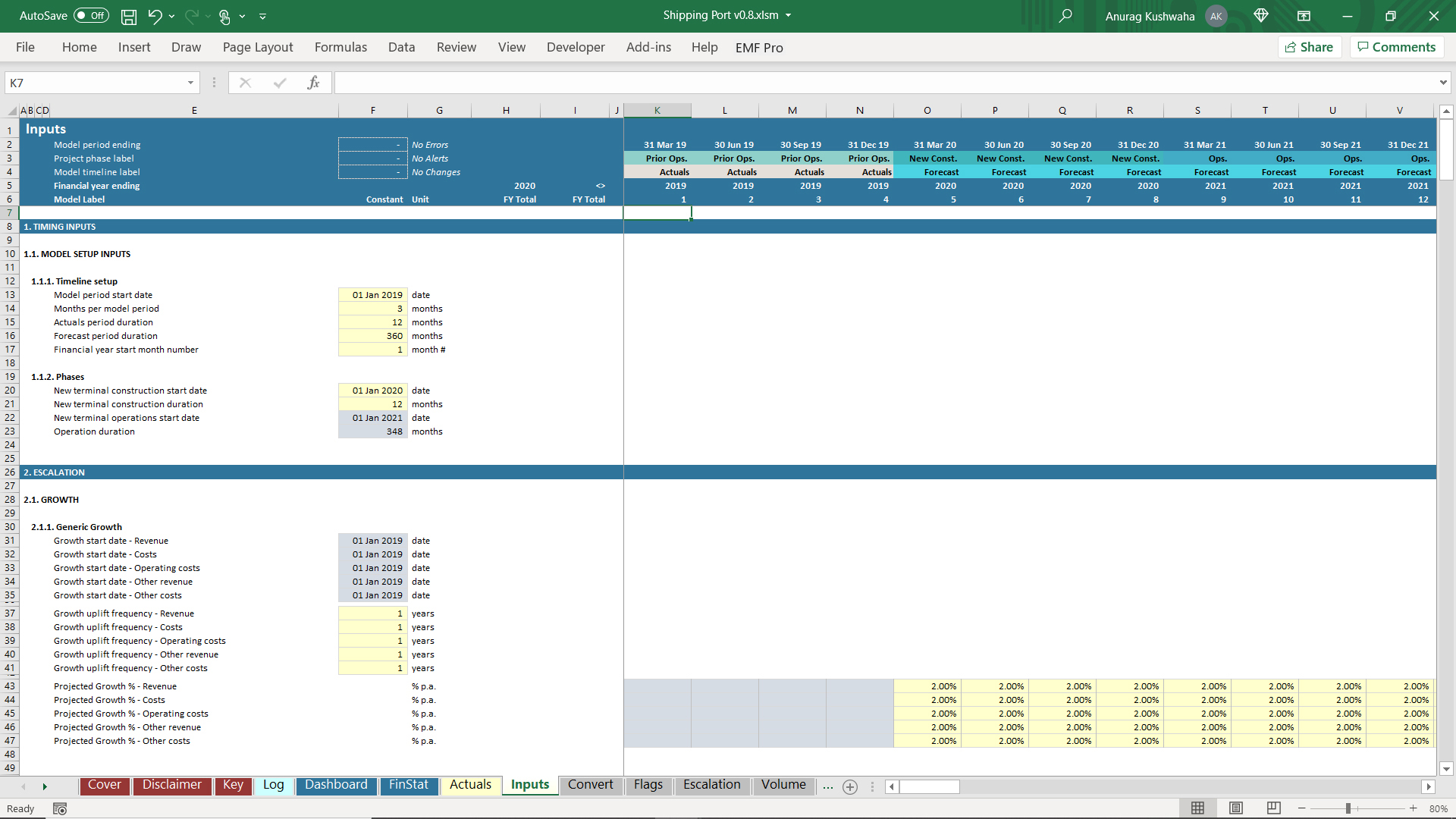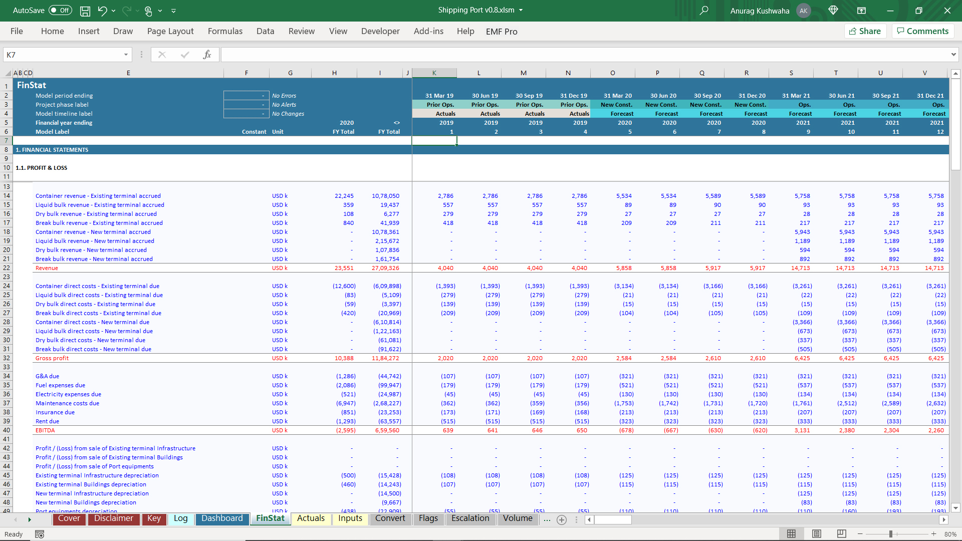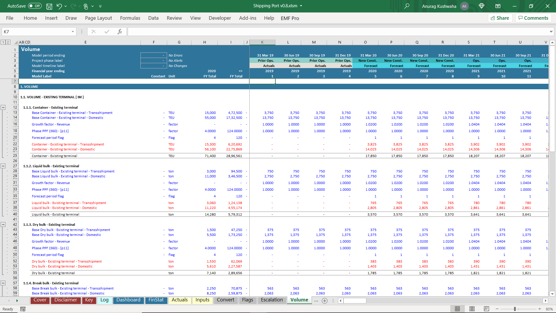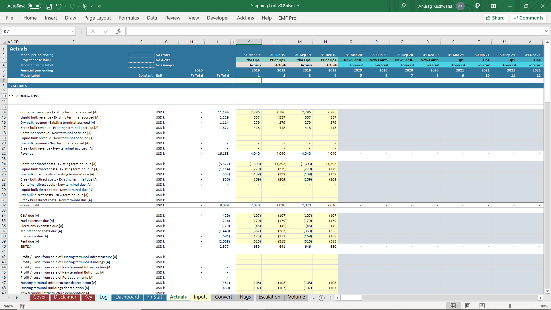 1. The model has 1 year Actuals and assumes the port to be operational, and a new terminal needs to be built.
