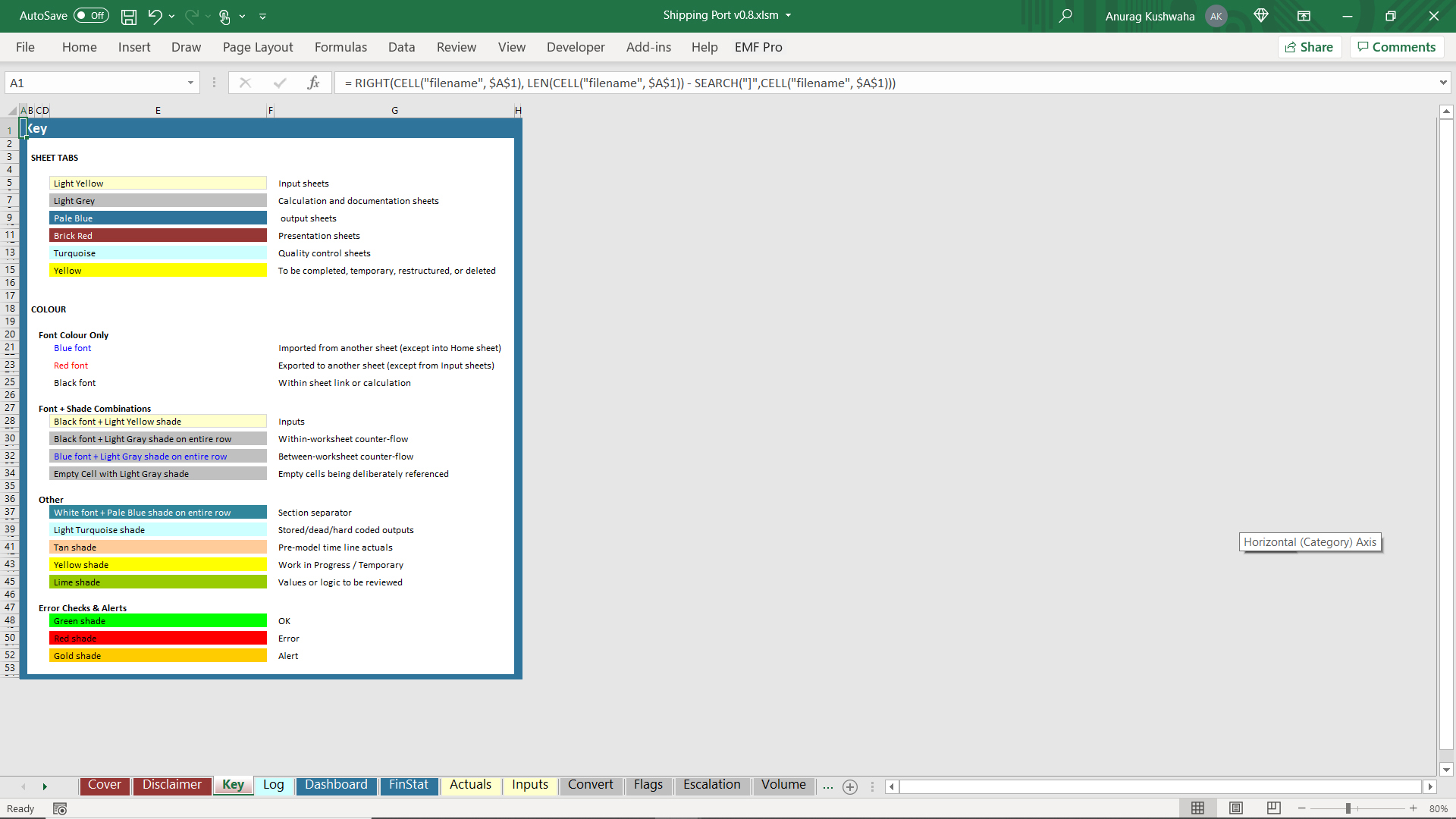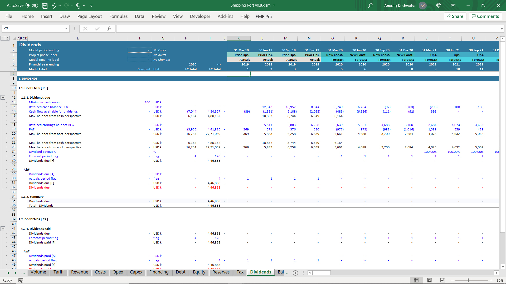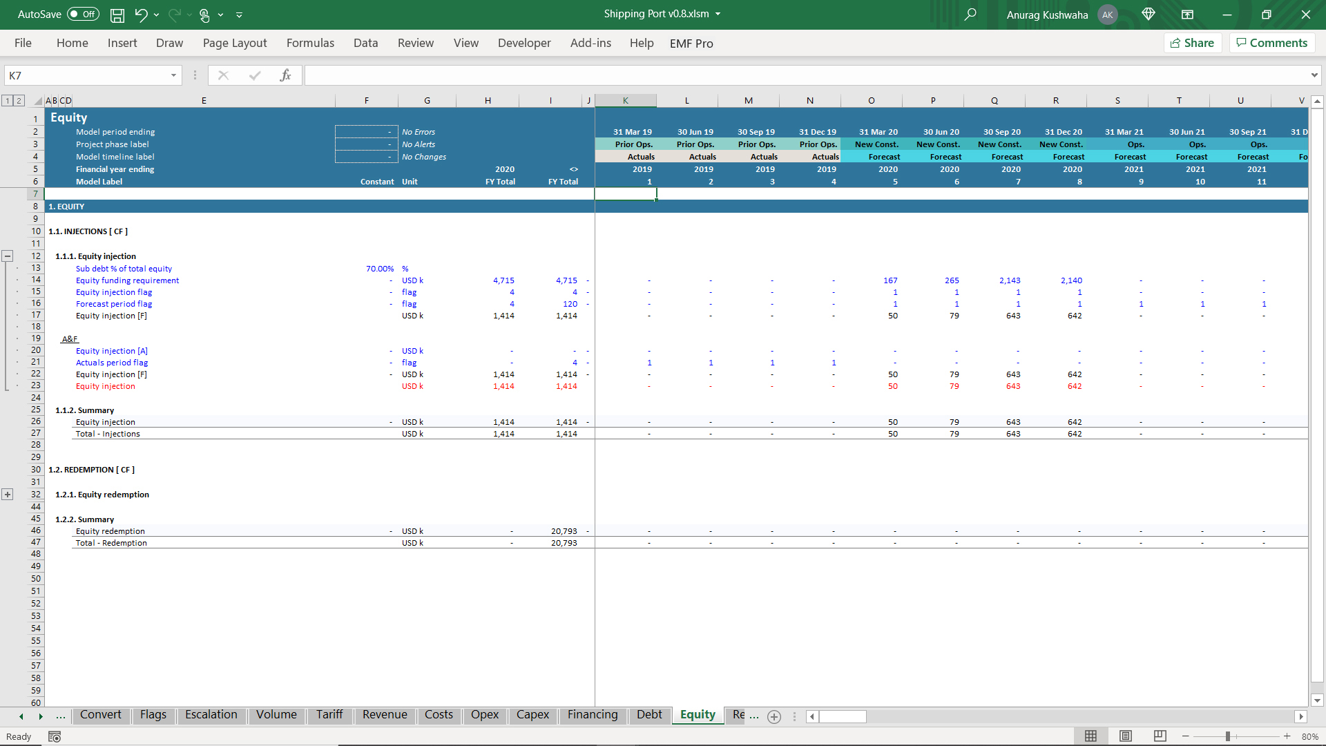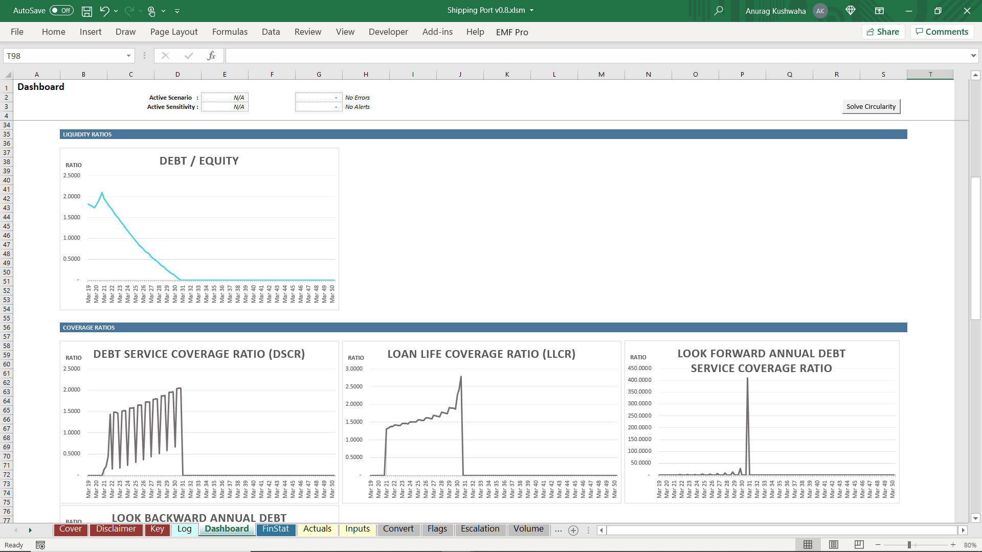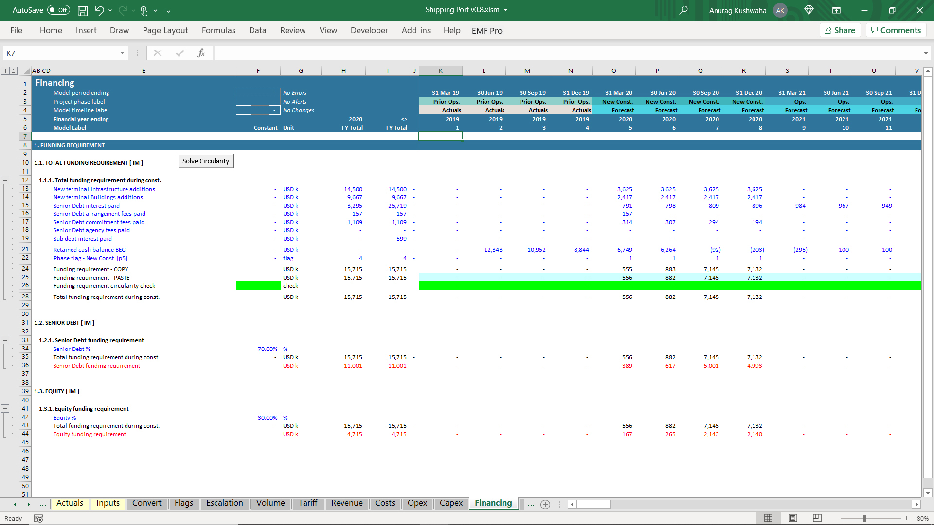 This is an excel model created for shipping port project, and was created using financial automation tool 'Ampere'. The model has the following features