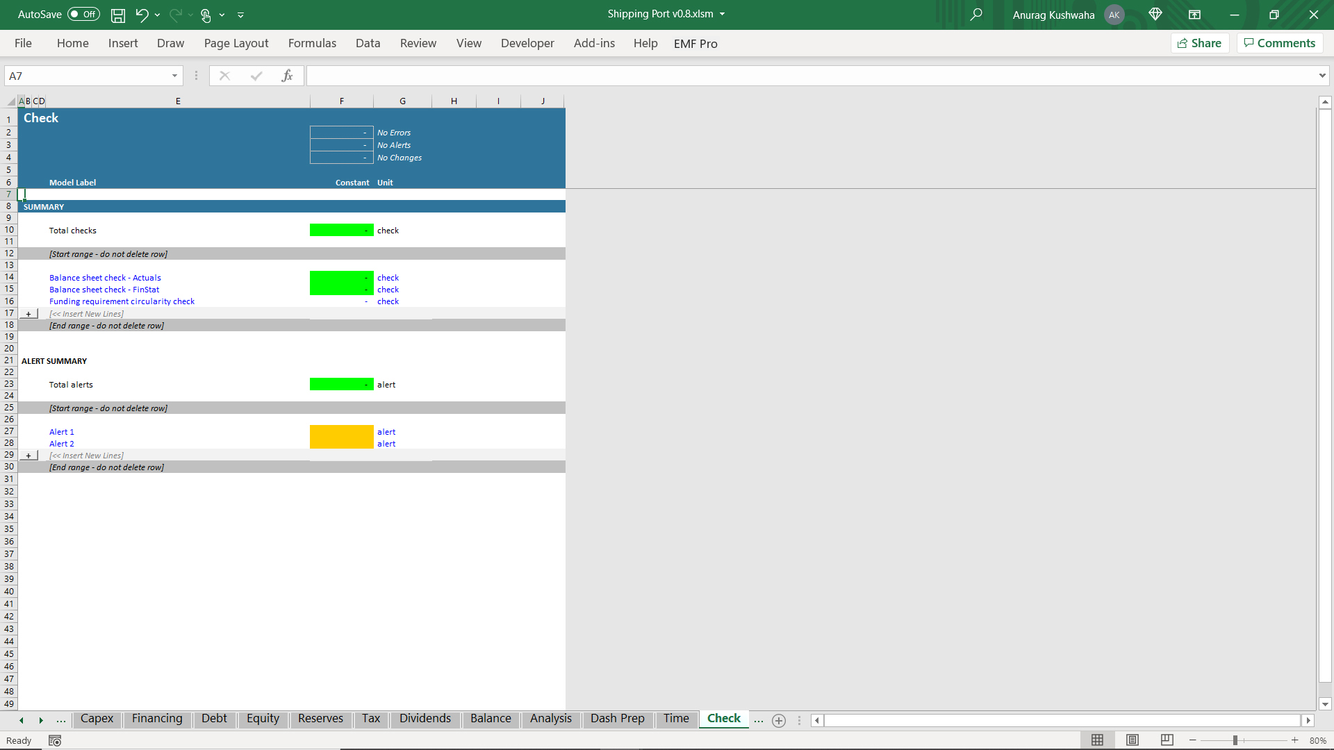5. There is a "Check" sheet to track any mismatches in the model