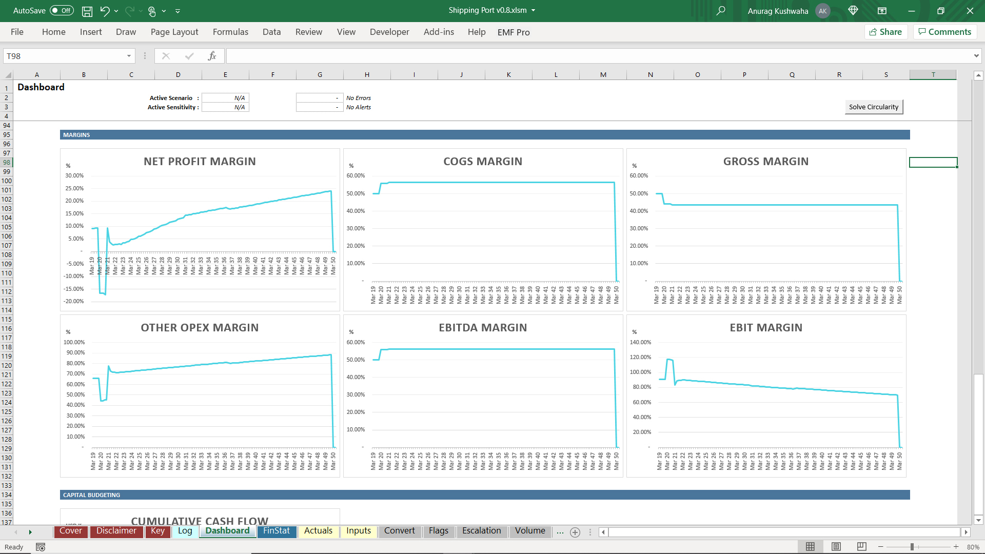 This model has been developed considering the port authority is looking to construct and open a new terminal along with an existing terminal. IRR and NPV has been calculated along with Coverage Ratios like DSCR and LLCR, considering the new terminal funding requirements.